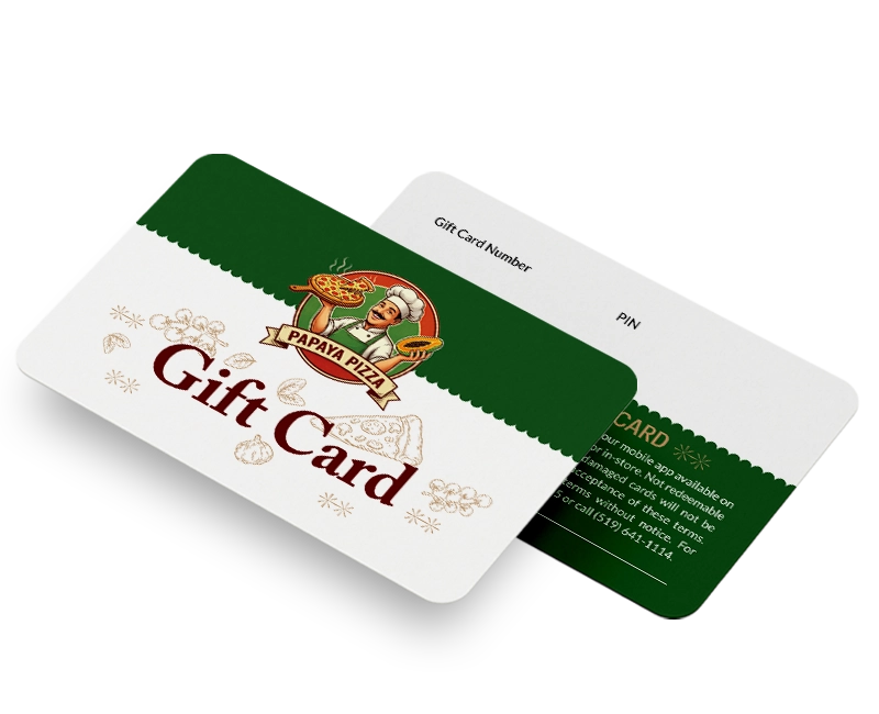A perfect gift for any occasion. Papaya Pizza gift cards can be redeemed in-store, online, or through our mobile ordering system.